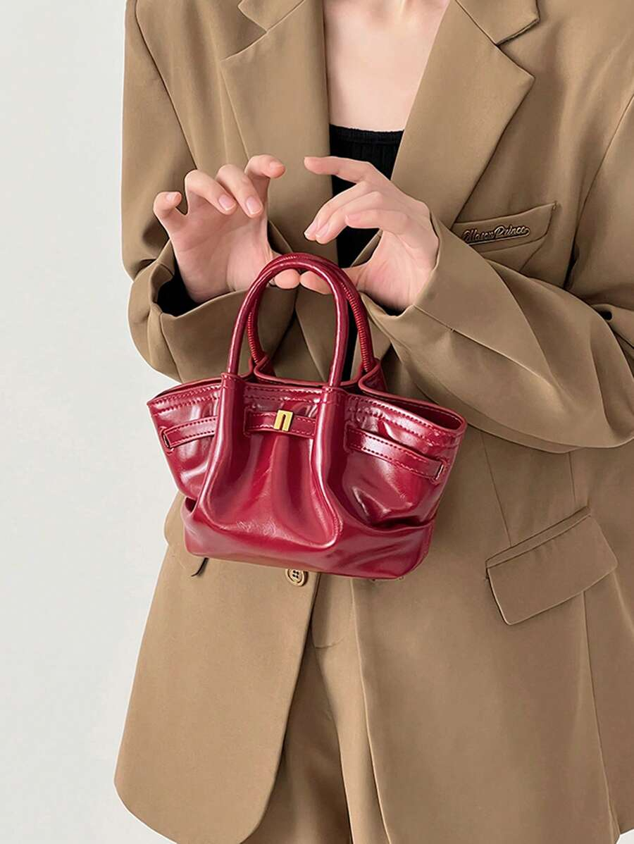 حقيبة هلال من الجلد اللامع